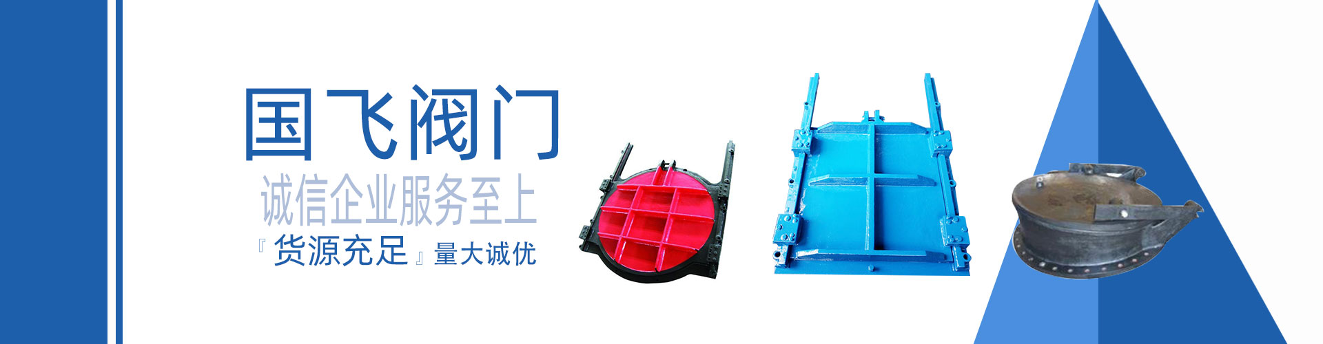 浙江國飛閥門科技有限公司坐落于擁有中國閥門之都”美稱的永嘉甌北,是集中開發、設計、制造、銷售為一體的科技型企業,現主要生產的產品有污水處理閥,百葉閥、套筒閥、電動插板閥、不銹鋼渠道閘門、不銹鋼拍門、錐形閥、鑄鐵鑲銅閘門、電動通風蝶閥、泄爆閥,配水閘閥,套套閥,浮筒閥,插板閥,電磁閥,燃氣緊急切斷閥,不銹鋼電磁閥,高爐煤氣閥、電力閥、石化閥配套和特種非標閥等10大類;產品廣泛應用于石油、化工、冶金、建材、市政環保、制藥、電力等行業。